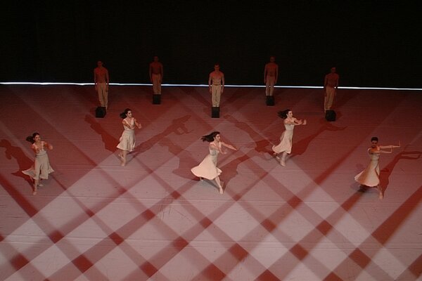 Белая медитативность сменяется красными всполохами страсти, а на смену протяжным звукам приходят энергичные барабаны. Добродушные дуэты сменяются жесткими танцевальными дуэлями. Блеск земного золота Императора слабеет перед ослепляющим лунным светом. Почти пронзительная тишина спорит с безумным рокотом барабанов. Завораживающе красиво поставленный свет работает в содружестве с идеальной геометрией и тщательно рассчитанному хаосу танцев. Если и бывает на свете спектакль-гипноз, то это совершенно точно «Лунная принцесса» Килиана.